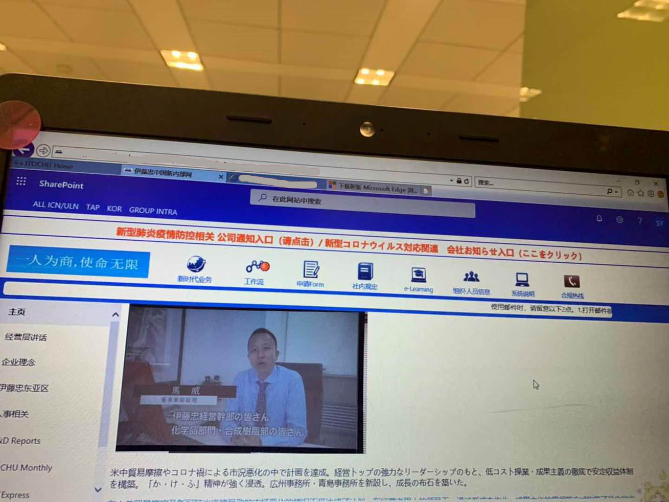 朗跃获得经营努力奖的讯息已正式刊登在伊藤忠集团的社刊上了,宫岛部长非常热心第一时间转达贺意。2020-07-02